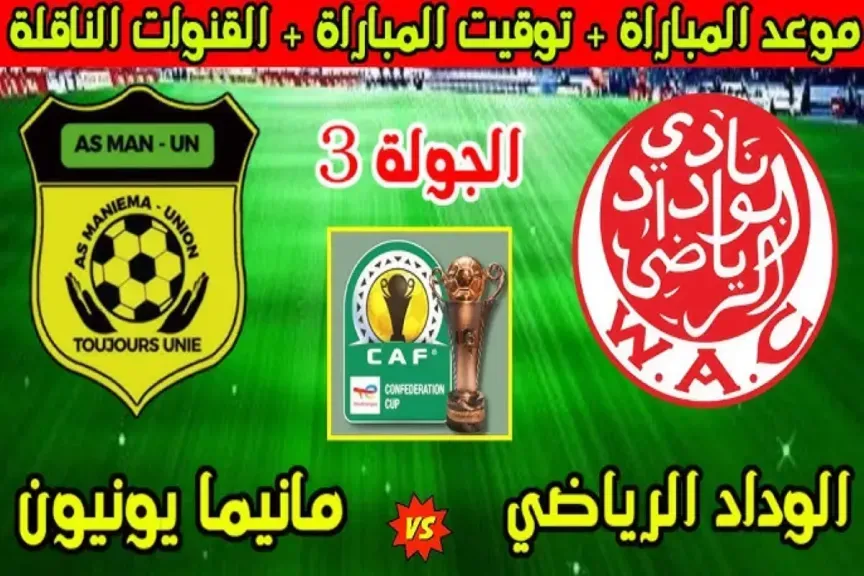 يستعد نادي الوداد الرياضي المغربي اليوم لاستقبال مانييما يونيون الكونغولي في مباراة مثيرة تجمع بين الفريقين ضمن الجولة الثالثة من دور المجموعات لكأس الكونفدرالية الأفريقية على ملعب محمد الخامس بالدار البيضاء.